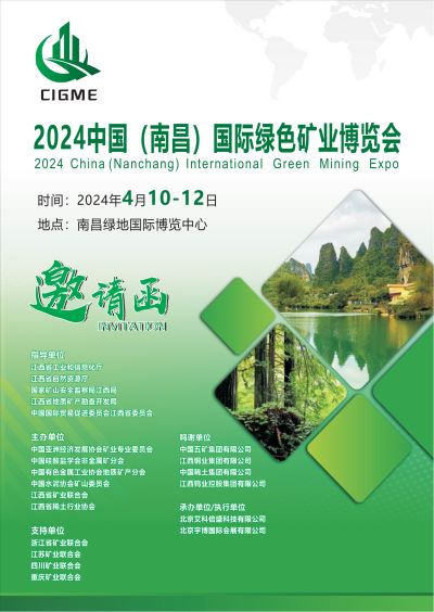 2024南昌国际绿色矿业博览会是由中国亚洲经济发展协会矿业专业委员会,中国硅酸盐学会非金属矿分会,中国水泥协会矿山委员会和江西省矿业联合会以科技创新,智慧矿山为主题举办。将会在2024年4月10-12日在南昌绿地国际博览中心开幕!预计18个国家和地区350余家展商到时会在展出面积35000平方米的展馆中进行产品的展出,供46000专业观众的观看。邀请国内外企业参展一同响应国家发展经济绝不以牺牲环境为代价走低碳环保,可持续发展的科学发展之路。打造可循环开采的绿色矿山。