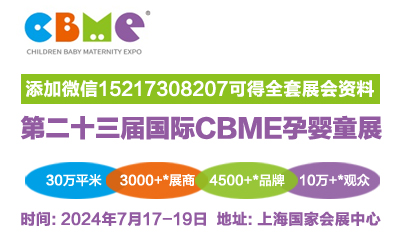「CBME 孕婴童展」(以下简称「CBME」)始于 2001 年,至今已在中国成功举办了 22 届。CBME 孕婴童展作为全球知名的孕婴童全渠道商贸服务平台,每年在上海举办。CBME 在中国取得巨大成功的同时,已扩展至土耳其、印度、印度尼西亚等国家,致力于推动和促进全球孕婴童产业的国际交流与贸易合作。目前,CBME 已成功举办了数百场高质量的行业活动,包括会议、培训、赛事、私人配对会、行业奖项以及行业报告发布等。随着全球贸易逐渐复苏,孕婴童行业迎来了更多国内外贸易新商机,市场规模呈现持续增长态势。2024CBME汇聚来自全球4500多个优质孕婴童品牌,涵盖母婴用品、孕婴童食品、营养品及休闲食品、玩具教育及文具、童装婴装及配饰、推车汽座及家具、供应链等全品类新品优品及优秀企业